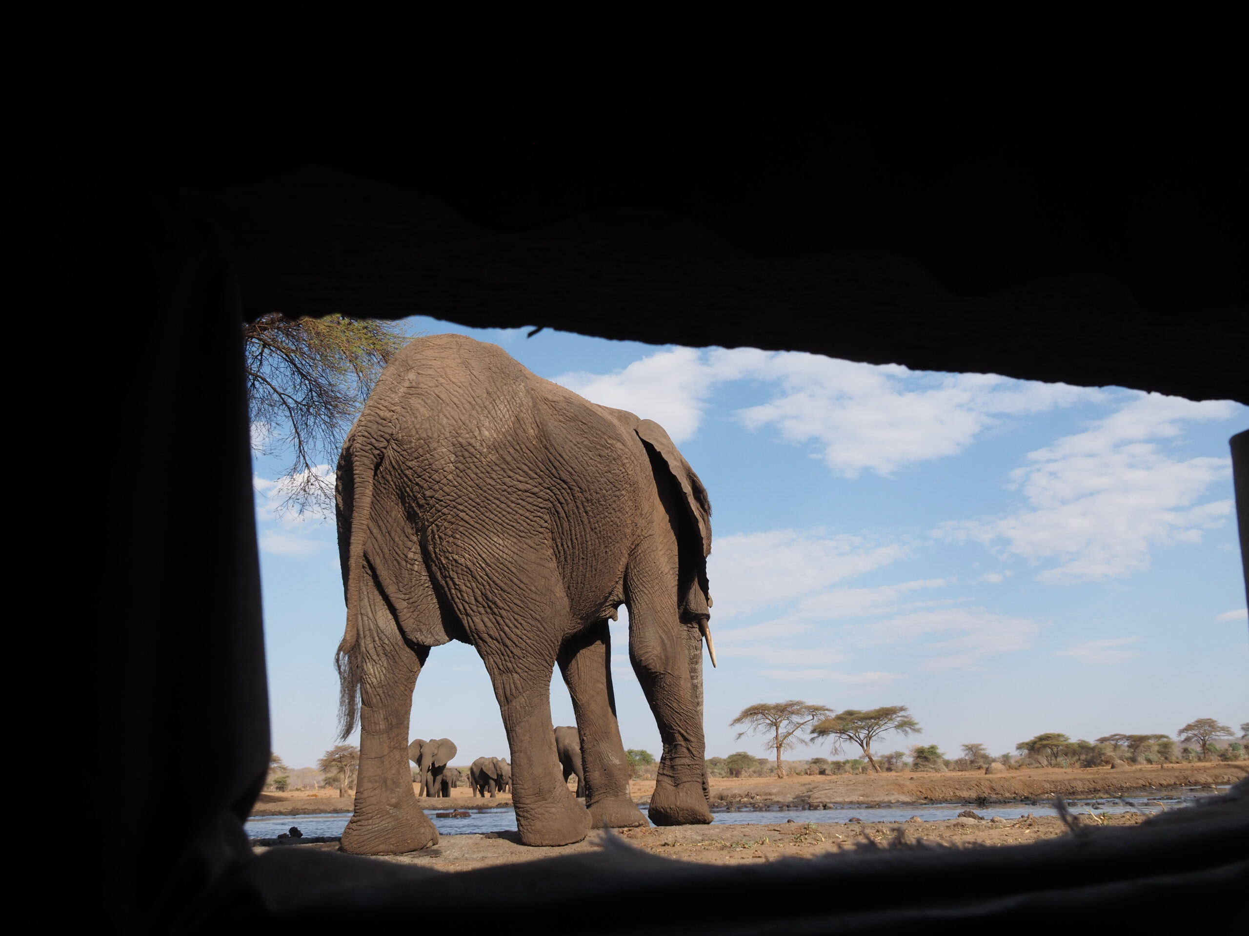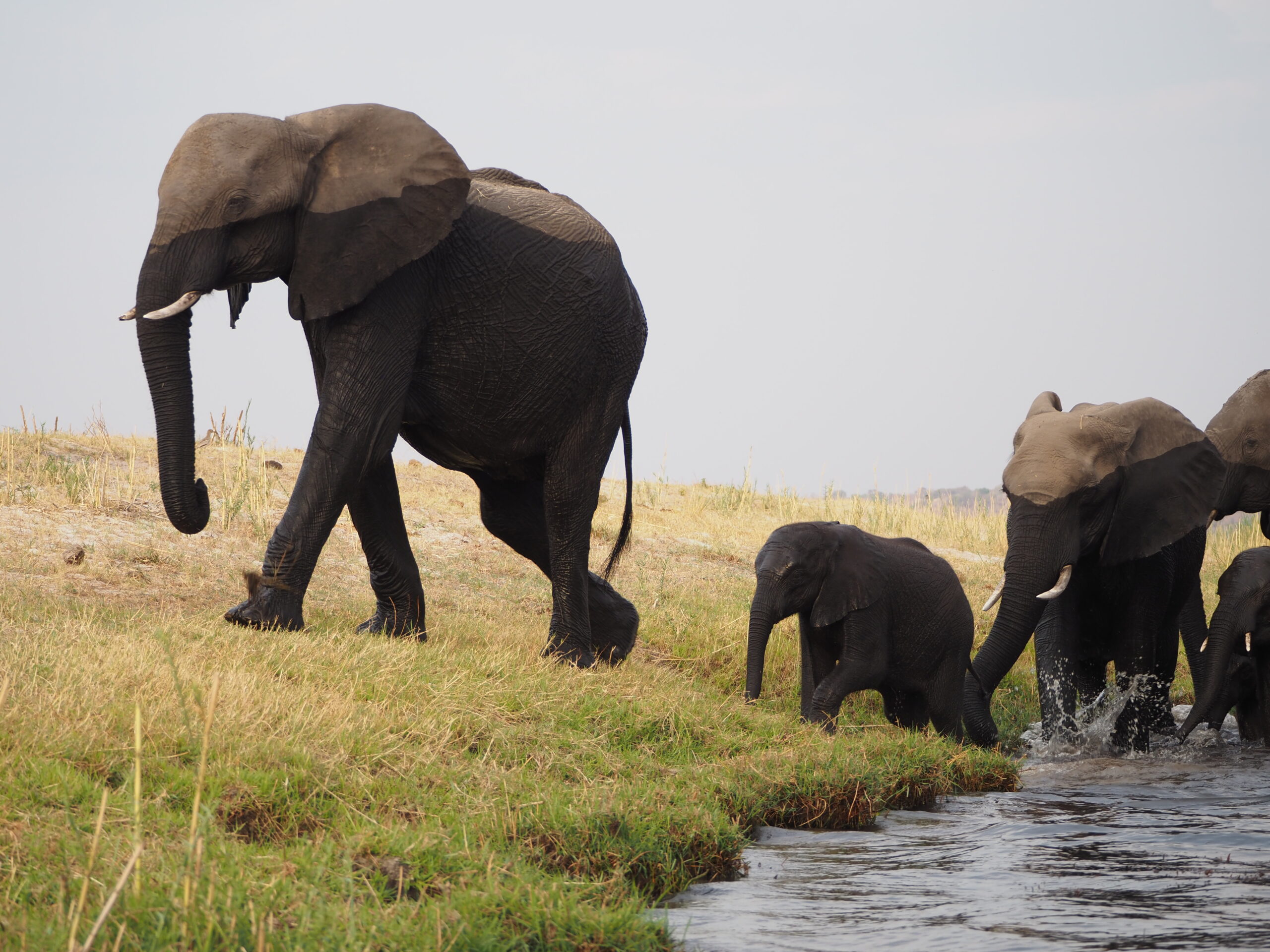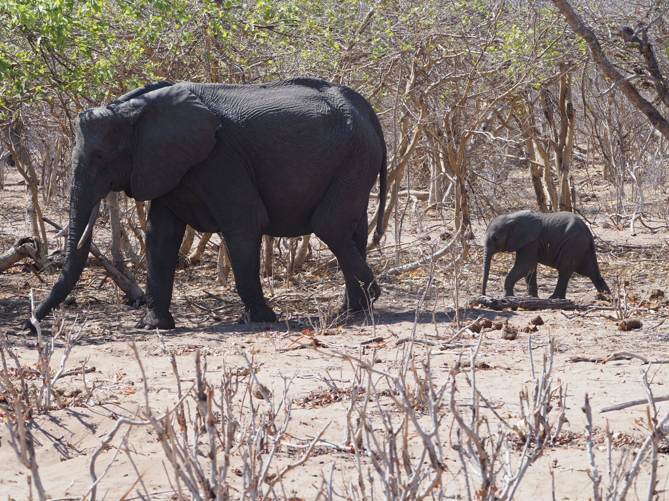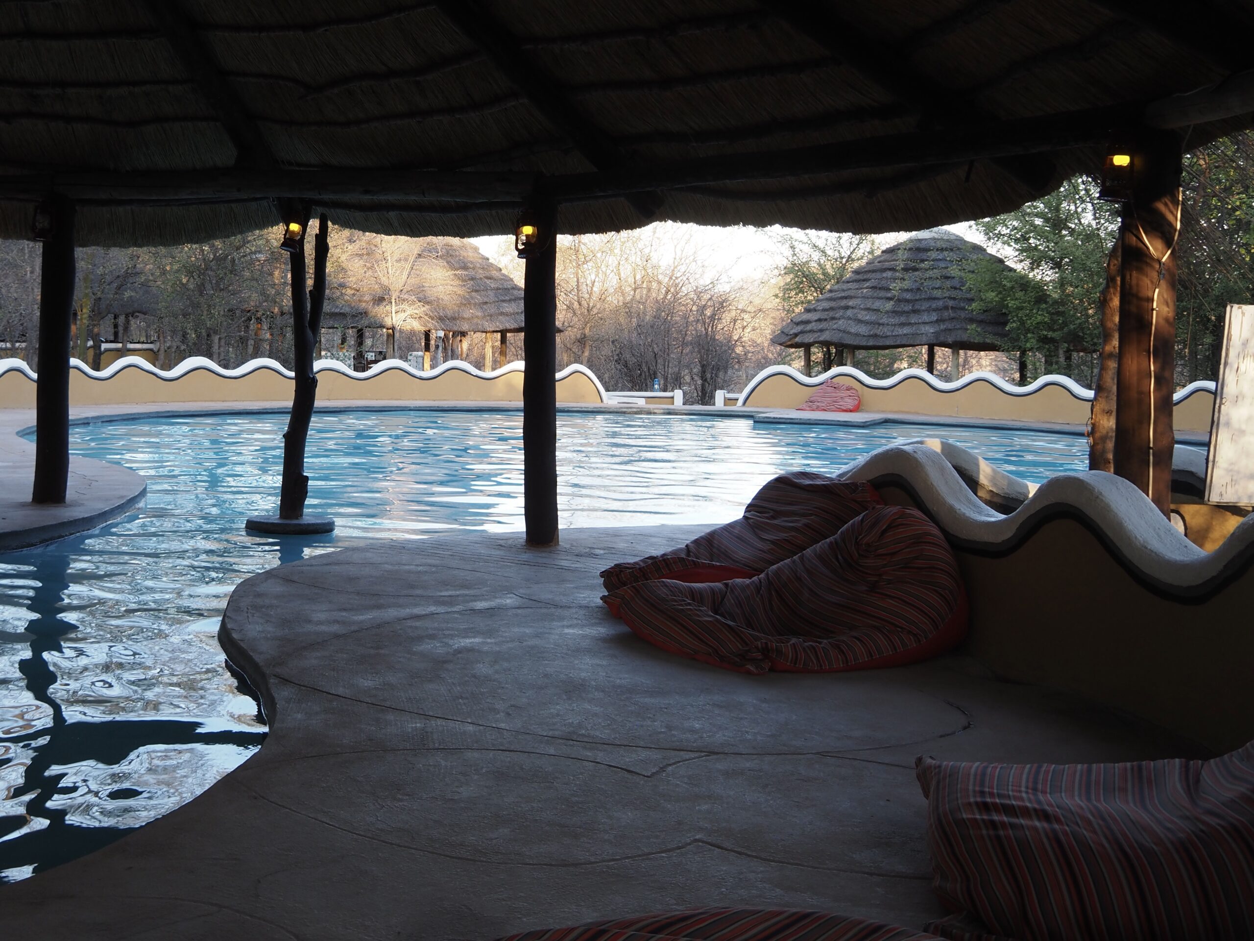 Nach unserer Sambia Reise freuen wir uns Botswana zu durchqueren. Allerdings ist die Hitze und die Dürre erdrückend. Das Elephant Sands ist ein Camp, das neben einem Wasserloch für Elefanten gebaut ist, und ein wahres Elefanten Erlebnis verspricht. Nur ist aktuell das Wasserloch so erbärmlich klein und die Zahl der Elefanten, die sich laben müssen so gross, dass einem die Tiere sehr leid tun und wir gar keine Fotos machen mögen. Es bleibt aber trotzdem ein eindrückliches und olfaktorisch prägendes Erlebnis, mit den grauen Riesen.