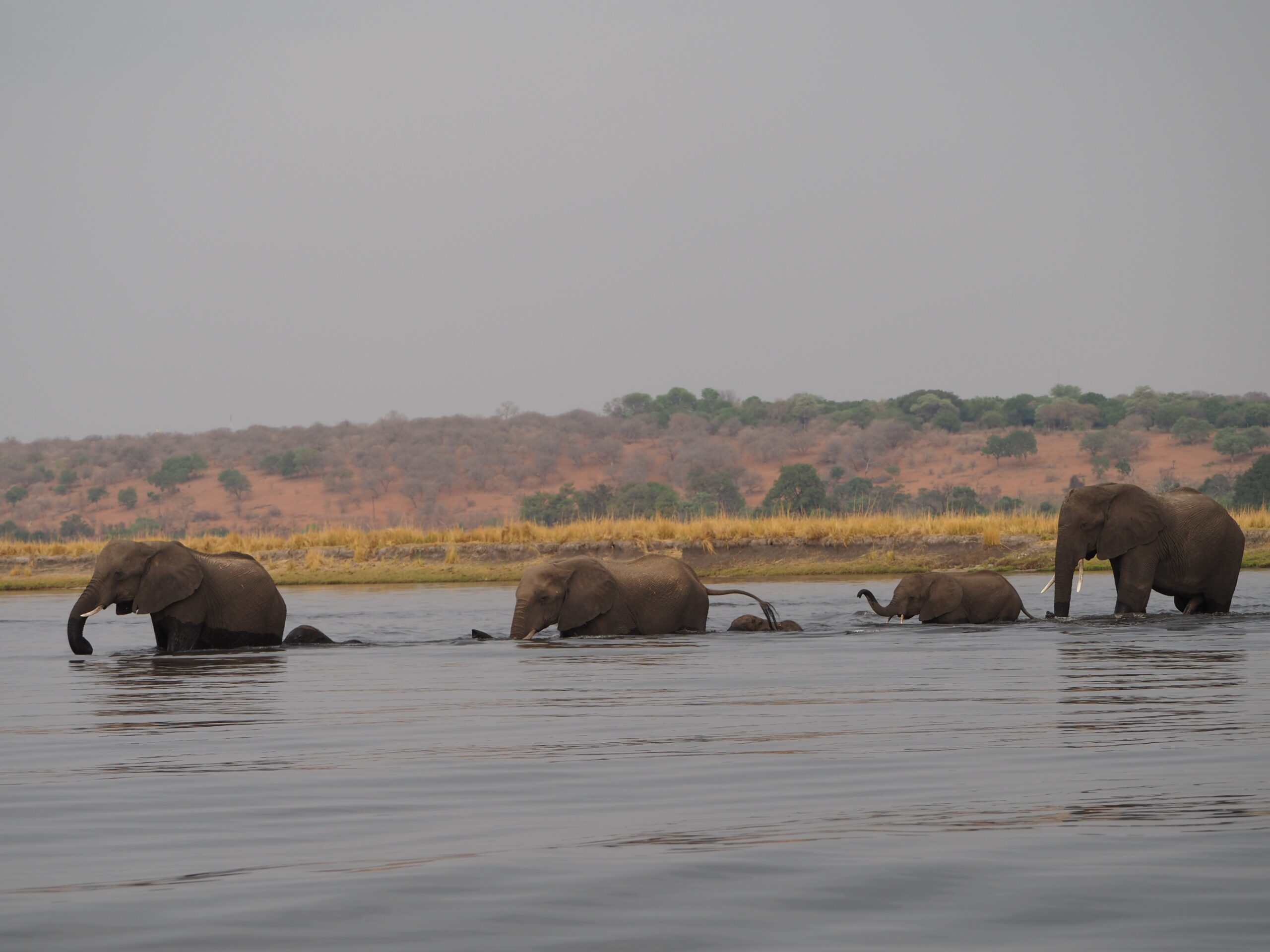 Am nächsten Tag geht’s die kleine Sandstrecke zurück, wir helfen einem feststeckenden französischen Touristenpaar aus dem Sand und fahren weiter nach Kasane. Der Grosseinkauf in Kasane gestaltet sich schwierig, viele frische Lebensmittel sind aktuell nicht erhältlich. Es wird also in den nächsten Tagen Phantasie brauchen um mit Zwiebeln, Kürbis und Aepfeln abwechslungsreich zu kochen! Entschädigt werden wir dafür mit einer schönen Ausfahrt durch den nördlichen Chobe-NP, einer tollen Bootsfahrt auf dem Chobe-River und einem elefantenreichen Aufenthalt im Senyati Safari Camp. Wir haben darauf verzichtet mit unserem IVECO in den Chobe Park zu fahren und dort zu übernachten, die Parkgebühren für unser Gefährt sind schlicht horrend.