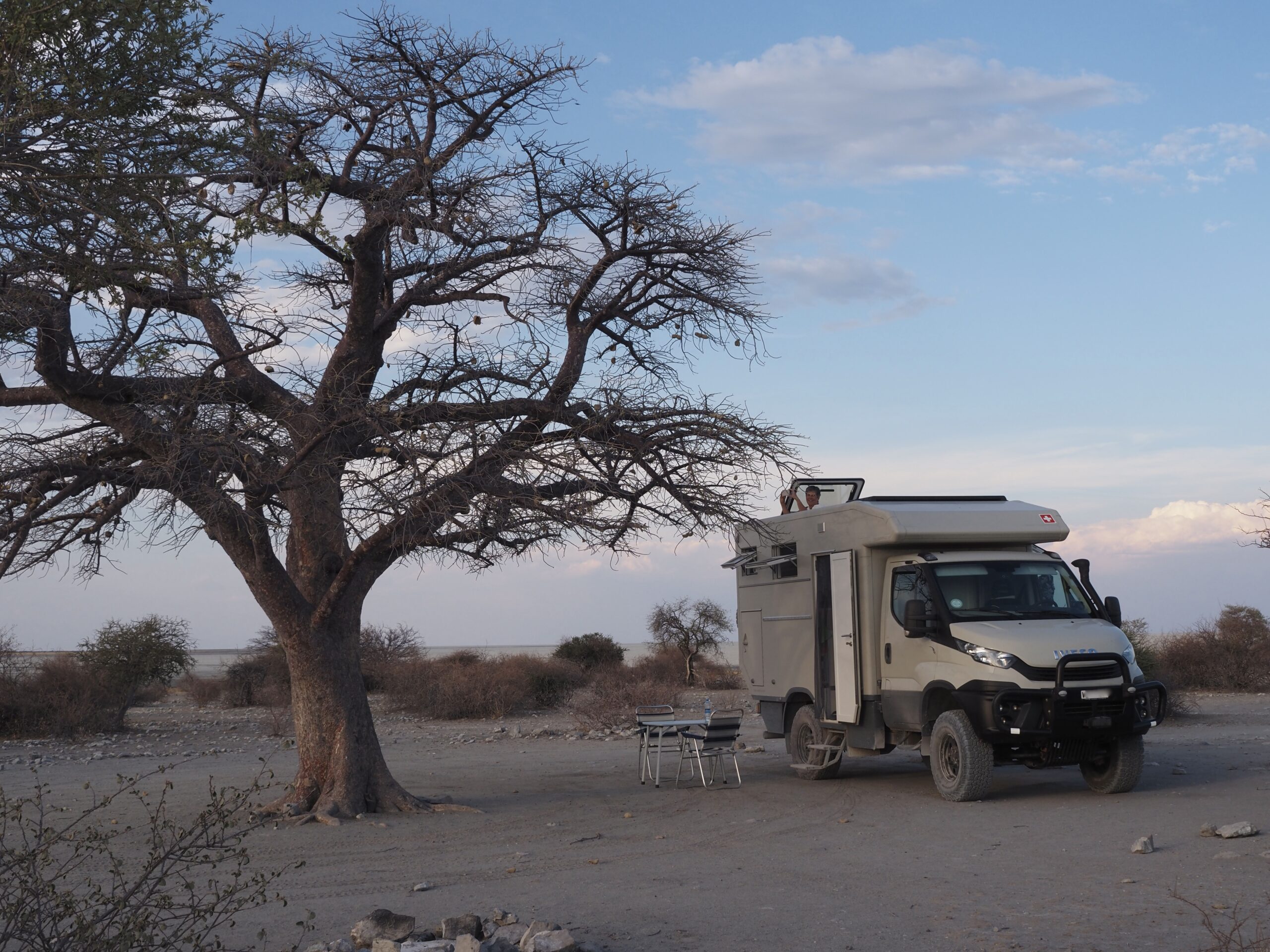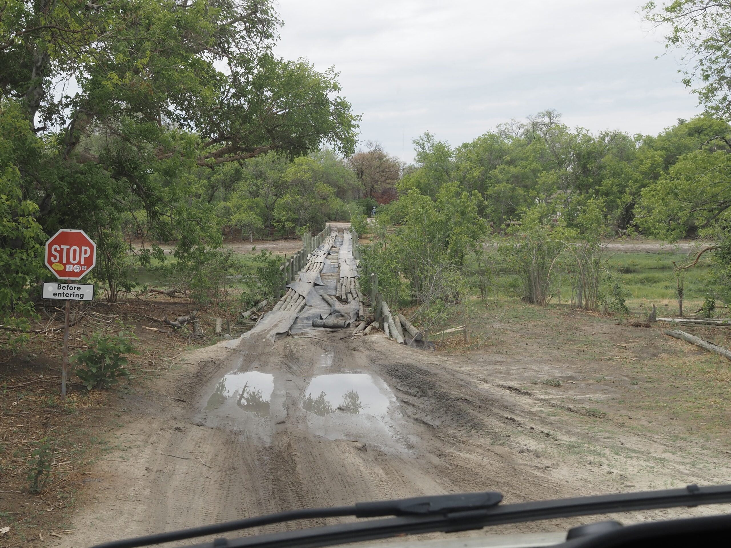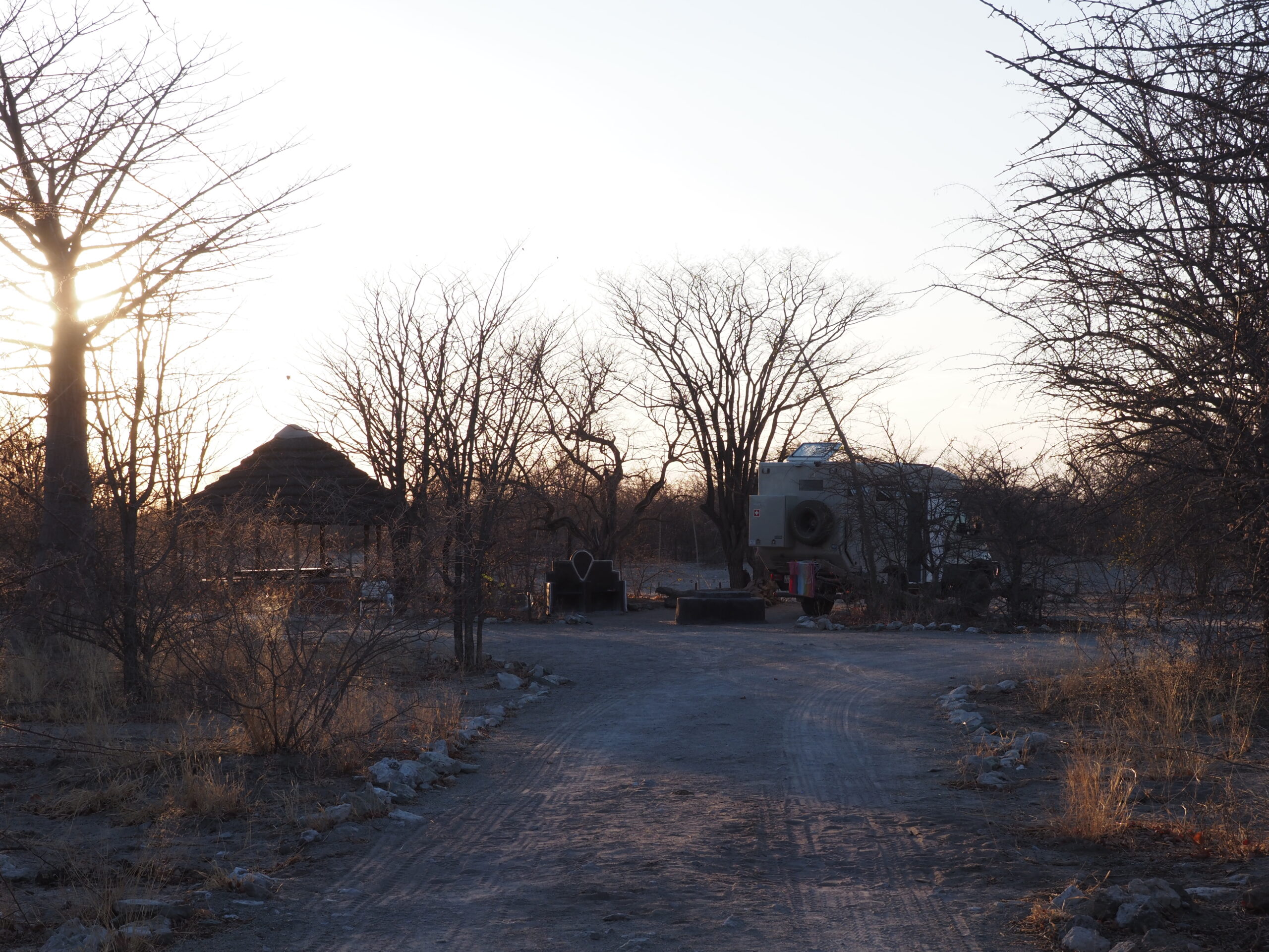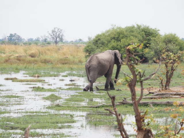 Unsere nächste Station heisst Maun, als Zwischenhalt peilen wir wiederum das Camp “Planet Baobab” an, das aber in der Nacht zuvor leider, leider von einem Brand grossteils zerstört wurde. Wir verbringen unsere Nacht etwas abseits der Hauptstrasse. In Maun treffen wir einige Overlander und verbringen nette Stunden miteinander, die meisten kennen sich im Moremi NP schon gut aus und geben uns Tips, aber niemand weiss so genau, welche Strassen wir mit unserem Gefährt benützen können. Die Piste bis nach Mababe ist rau und ruppig, umso schöner ist dann der Aufenthalt direkt am Khwai River im Magotho Community Camp. Wir bleiben zwei Tage und werden verwöhnt mit tierischen Besuchen: Elefanten, Zebras und in der Nacht Löwen. Danach gehts über den Ort Khwai (wobei kein eigentlicher Ort auszumachen ist) über die Khwai River Bridge (<5t, das Schild sehen wir aber erst nachdem wir die Brücke passiert haben!) zum North Gate. Mittlerweilen hat es schon 2 Tage geregnet und die “wet roads” wurden geschlossen, die “dry roads” haben auch Tümpel sind aber geöffnet. Auf der Fahrt zum Camp sehen wir keine Tiere. Das Xakanaxa Camp ist in verwahrlostem Zustand und zudem hat’s bereits seit 24h kein Wasser, dementsprechend sehen auch die Sanitäranlagen aus. Zum Glück sind wir diesbezüglich unabhängig. Generell zeichnen sich die staatlichen Camps in Botswana vor allem durch ihre hohen Preise aus.
