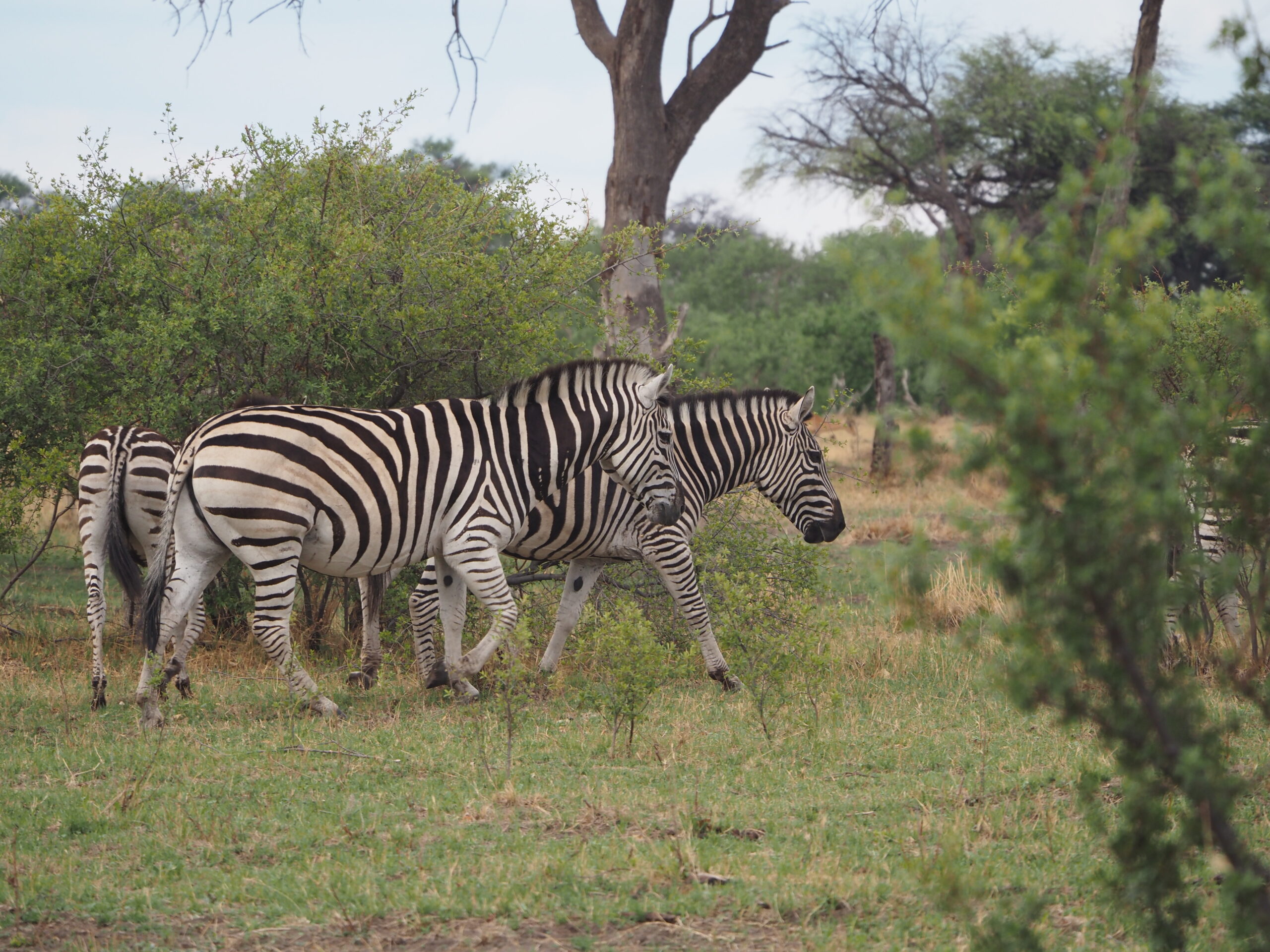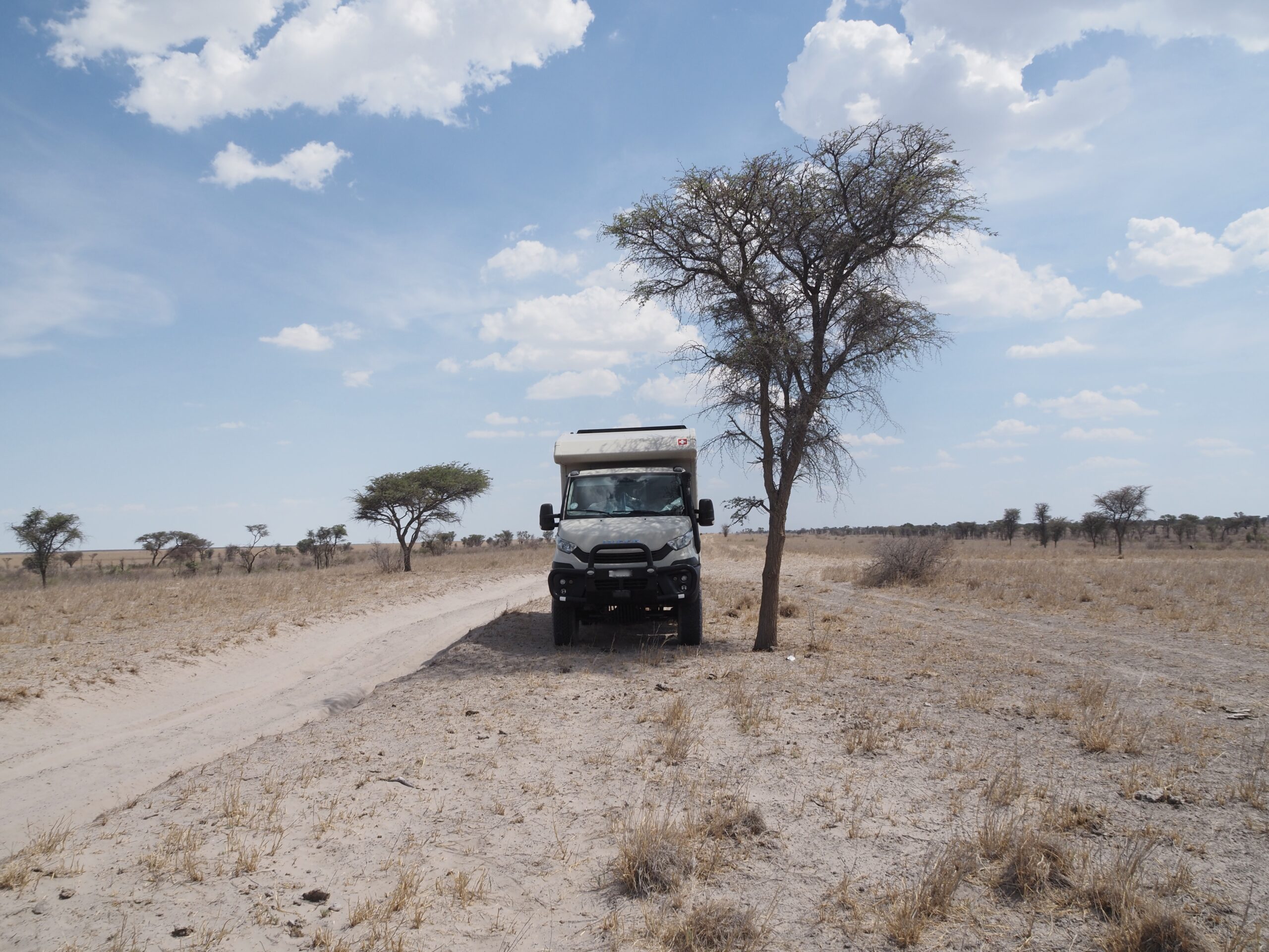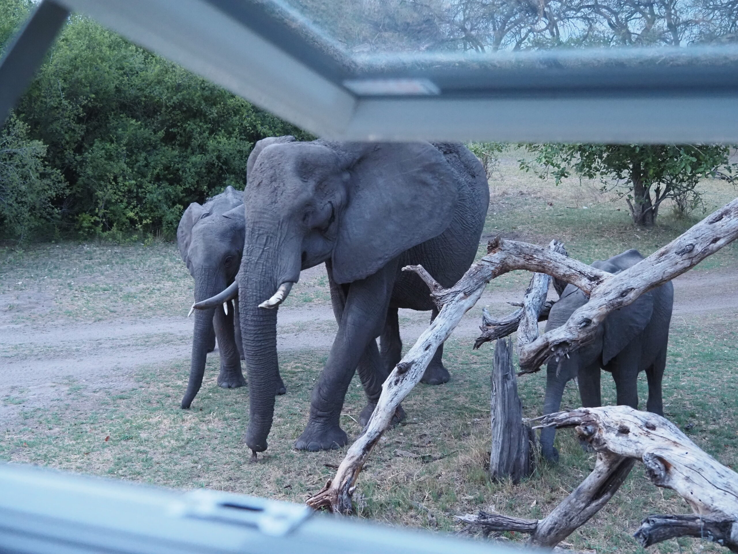 Unsere nächste Station heisst Maun, als Zwischenhalt peilen wir wiederum das Camp “Planet Baobab” an, das aber in der Nacht zuvor leider, leider von einem Brand grossteils zerstört wurde. Wir verbringen unsere Nacht etwas abseits der Hauptstrasse. In Maun treffen wir einige Overlander und verbringen nette Stunden miteinander, die meisten kennen sich im Moremi NP schon gut aus und geben uns Tips, aber niemand weiss so genau, welche Strassen wir mit unserem Gefährt benützen können. Die Piste bis nach Mababe ist rau und ruppig, umso schöner ist dann der Aufenthalt direkt am Khwai River im Magotho Community Camp. Wir bleiben zwei Tage und werden verwöhnt mit tierischen Besuchen: Elefanten, Zebras und in der Nacht Löwen. Danach gehts über den Ort Khwai (wobei kein eigentlicher Ort auszumachen ist) über die Khwai River Bridge (<5t, das Schild sehen wir aber erst nachdem wir die Brücke passiert haben!) zum North Gate. Mittlerweilen hat es schon 2 Tage geregnet und die “wet roads” wurden geschlossen, die “dry roads” haben auch Tümpel sind aber geöffnet. Auf der Fahrt zum Camp sehen wir keine Tiere. Das Xakanaxa Camp ist in verwahrlostem Zustand und zudem hat’s bereits seit 24h kein Wasser, dementsprechend sehen auch die Sanitäranlagen aus. Zum Glück sind wir diesbezüglich unabhängig. Generell zeichnen sich die staatlichen Camps in Botswana vor allem durch ihre hohen Preise aus.